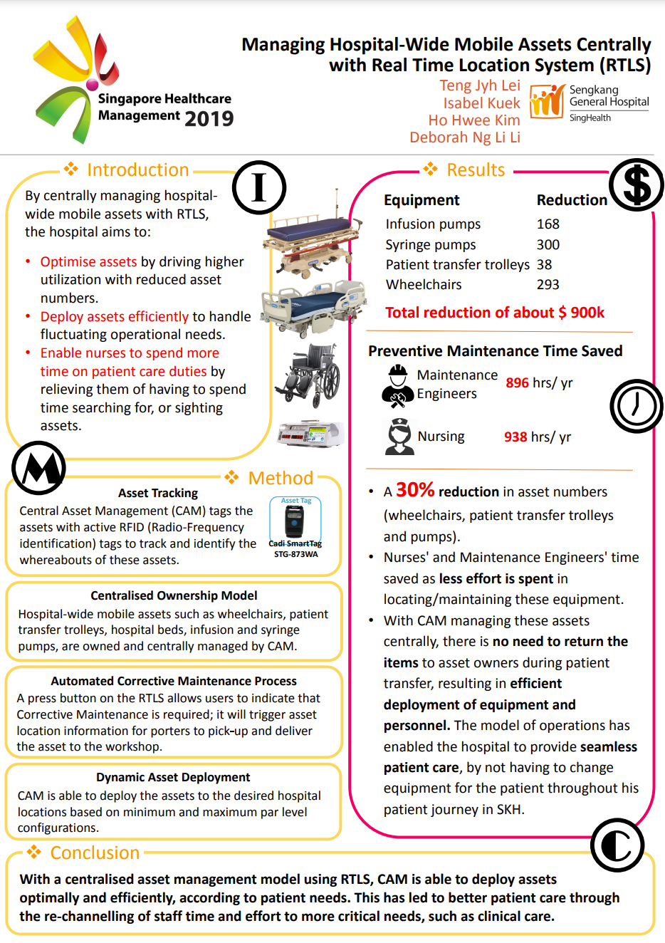 Singapore Healthcare Management 2019 Winning Poster “Managing Hospital Wide Mobile Assets Centrally with Real Time Location System (RTLS)” submitted by Seng Kang General Hospital